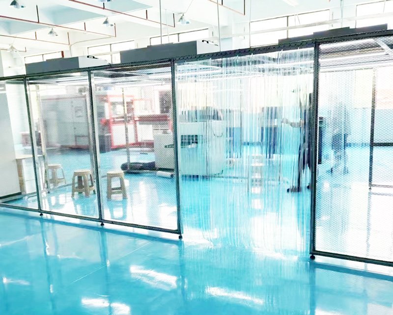 3、性能稳定:十万级洁净棚采用工业铝材或不锈钢方通作为框架,结构稳固、美观、不生锈、不产尘;采用新加坡PCI离心风机和高效过滤器作为风机滤网机组,具有长寿命、低噪声、免维护、震动小、可无级变速等特性,风机质量可靠,工作寿命长;采用防静电垂帘或钢化玻璃作为围合材料,防静电效果好、透明度高、网格清晰、柔韧度好、不变形、不易老化;采用净化室专用净化灯作为照明设备,不产尘、亮度均匀。